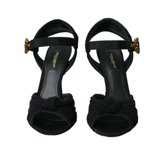 Dolce & Gabbana Black Suede Embellished Heels Sandals Shoes