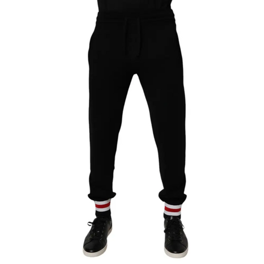Dolce & Gabbana Black Wool Mid Waist Jogger Sweatpants Pants