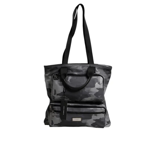 Dolce & Gabbana Gray Camo Cotton Multiple Compartments Tote Bag