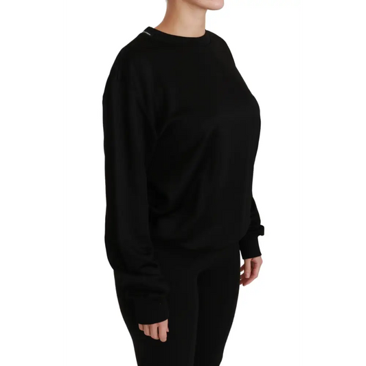 Dolce & Gabbana Black Cotton Crewneck Pullover Sweater