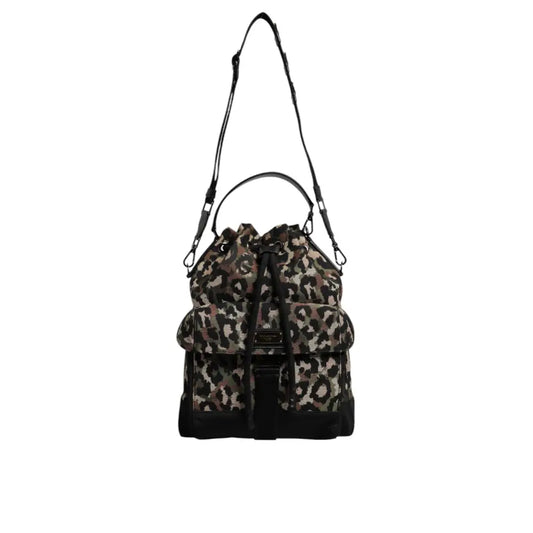 • Dolce & Gabbana Multicolor Leopard Cotton Shoulder Bucket Bag