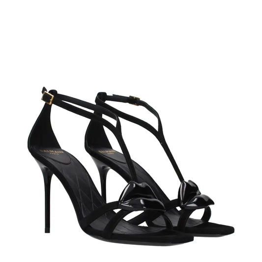 Balmain Black Leather Stiletto Heel Sandals