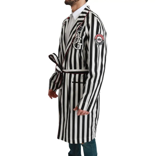 Dolce & Gabbana Black Coat Nightgown White Cotton Robe