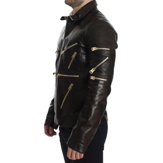 Dolce & Gabbana Brown Lambskin Leather Zipper Jacket