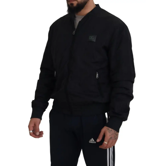 Dolce & Gabbana Black Nylon Logo Bomber Zipper Jacket
