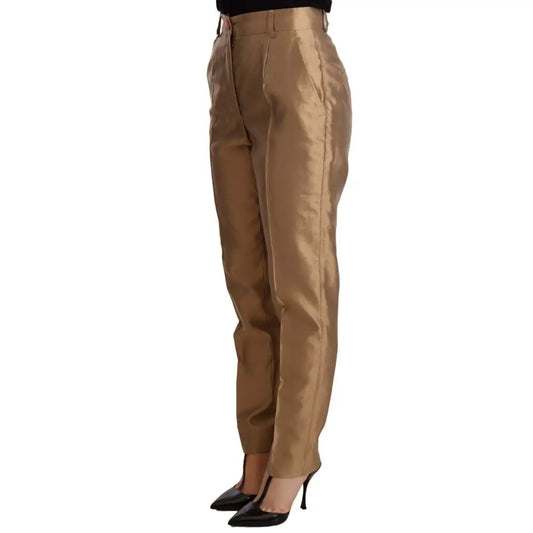 Dolce & Gabbana Elegant Tapered Silk Trousers in Gold