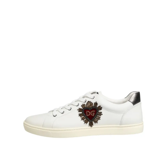 • Dolce & Gabbana White Leather Heart Embellished Sneakers Shoes
