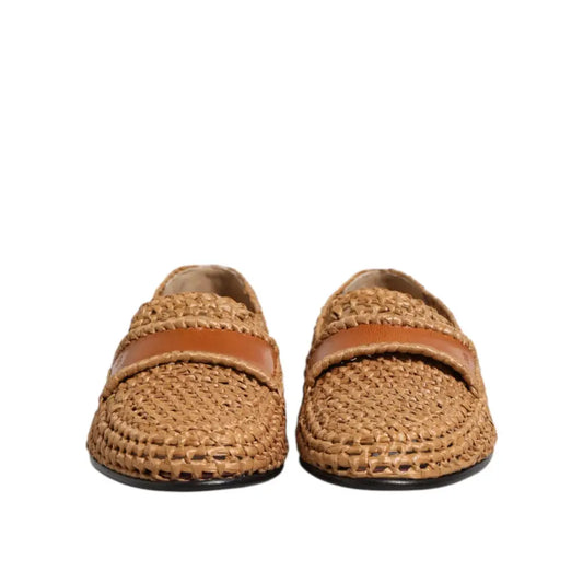 Dolce & Gabbana Brown Woven Raffia Slip On Loafers Shoes