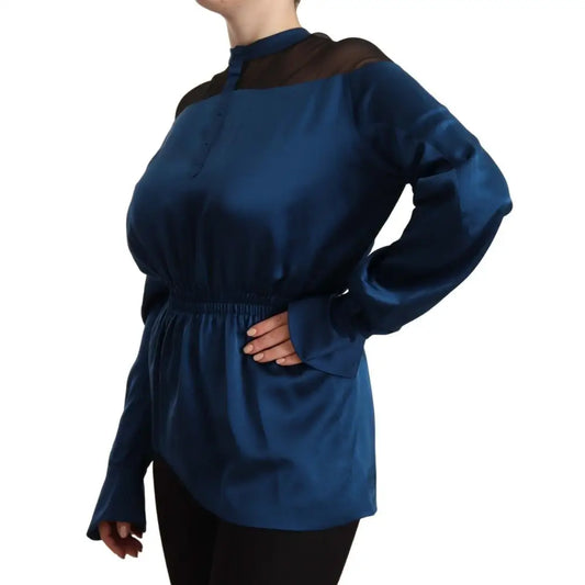 Masha Ma Blue Silk Long Sleeves Elastic Waist Top Blouse