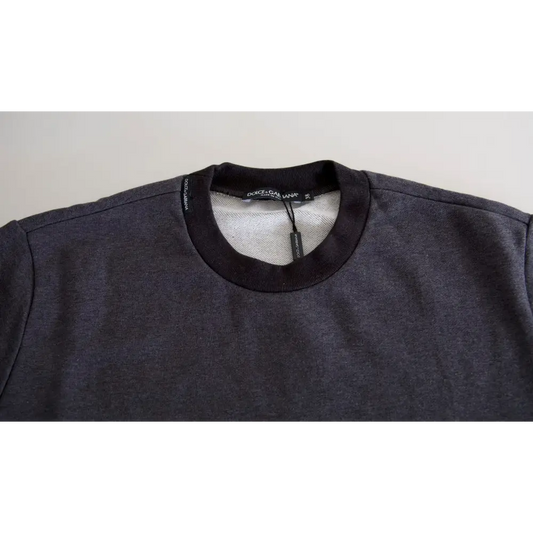 • Dolce & Gabbana Dark Gray Cotton Crew Neck Pullover Sweater