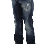Vis din flair for klassisk stil med Acht Blue Wash Cotton Denim Regular Fit Jeans. Disse jeans, lavet af 100% bomuld, har en holdbarhed og komfort, der vil følge dig gennem sæsoner og år. Den flotte blå vask tilføjer et dynamisk, alsidigt element til din garderobe, der nemt kan klædes op eller ned, afhængigt af anledningen. Acht er kendt for sit håndværk og kvalitetsmaterialer, og disse jeans er ingen undtagelse.