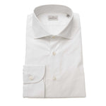 Opgrader din garderobe med Bagutta White Cotton herreskjorte med fransk krave, der byder på en usammerlignet kombination af klassisk italiensk æstetik og moderne komfort.