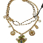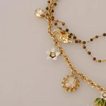 Dolce & Gabbana Gold Sky SP Brass Crystal Floral Statement Charms Necklace