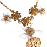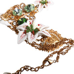 Opdag den ultimative statement halskæde med Dolce & Gabbana's Gold Brass Lily Crystal Sacred Heart Pendant Necklace. Dette kunstværk af en halskæde er symbolet på sofistikeret skønhed og drama, og er den perfekte kombination af traditionelt håndværk, moderne design og høj mode. Lavet af materialer af højeste kvalitet og designet til at skabe en vidunderlig kontrast i farve og form, vil denne halskæde helt sikkert tiltrække opmærksomhed og blive et mindeværdigt tilføjelse til enhver garderobe.
