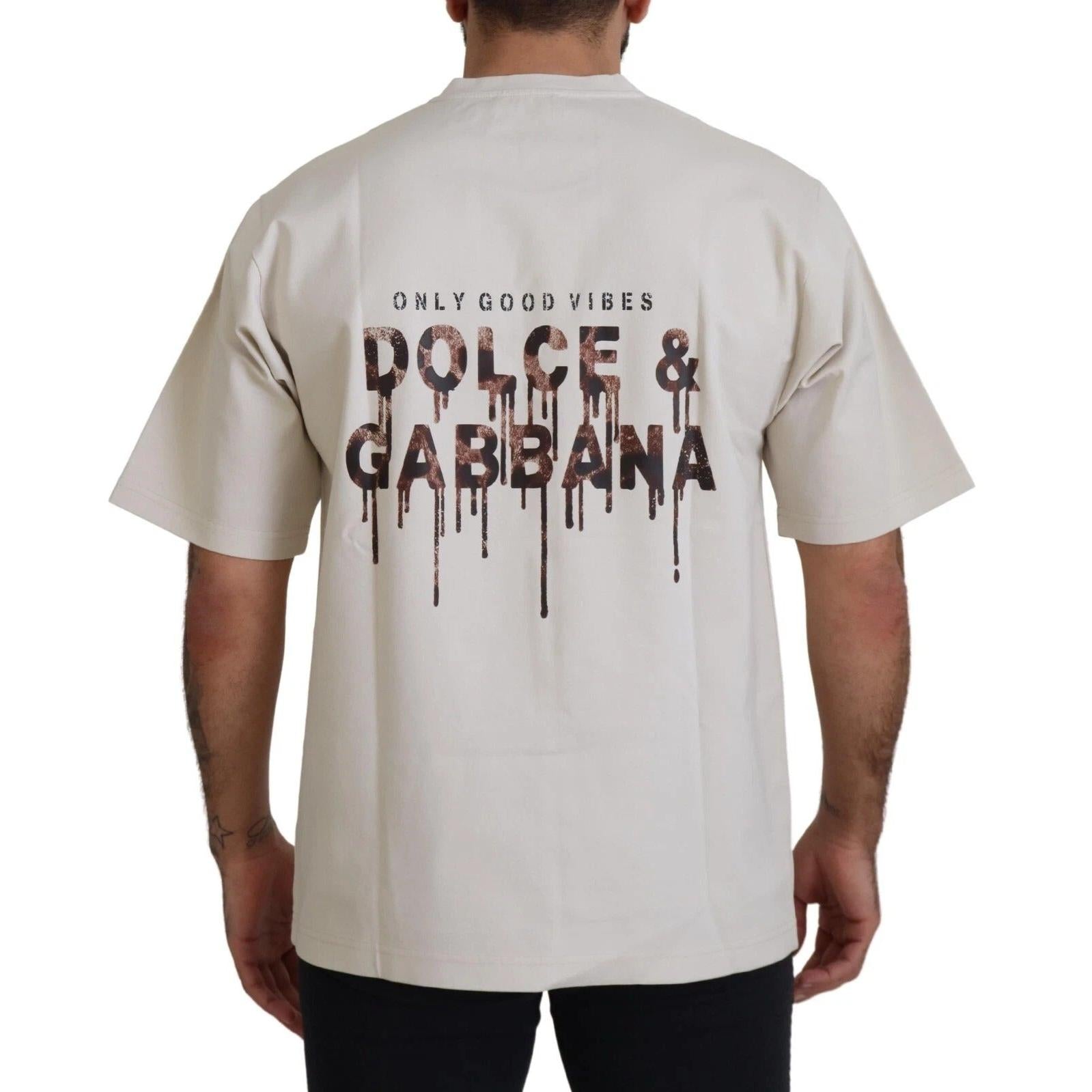Skabt med en uforlignelig sans for luksus, stammer denne T-shirt fra modehuset Dolce & Gabbana, der i årtier har været synonym med italiensk elegance og sofistikeret stil. T-shirten, som er lavet af ren bomuld i en blid elfenbensnuance, præsenterer et enkelt, men alligevel uforligneligt flot design, der bringer et touch af verden af modens luksus til det casual hverdagslook.