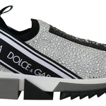 Dolce & Gabbana Silver Rhinestones Sorrento Sneakers Shoes