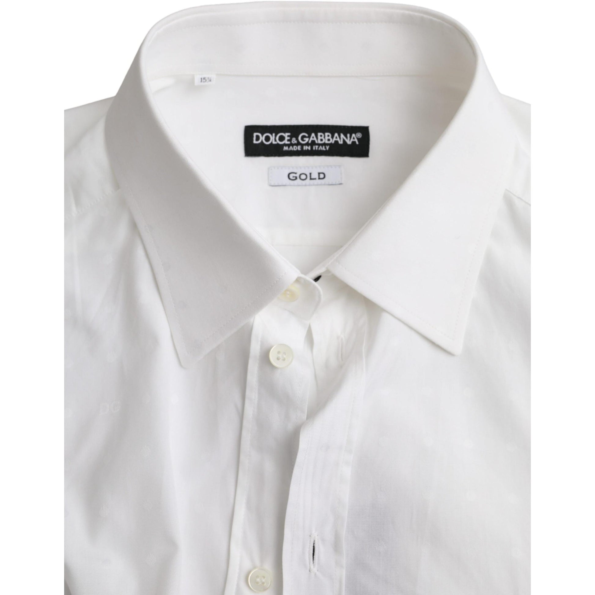 Dolce & Gabbana White Logo Cotton Men Dress GOLD Shirt