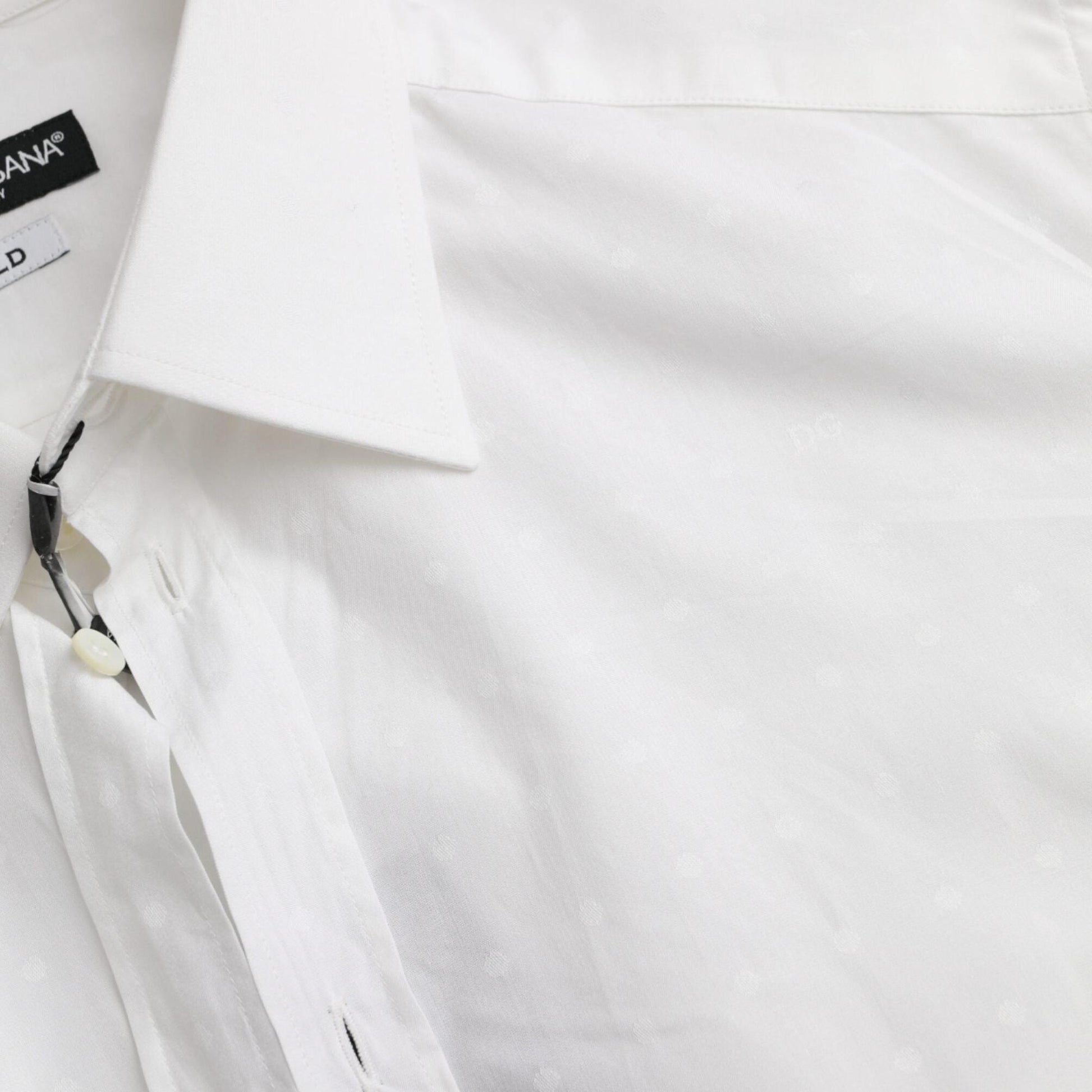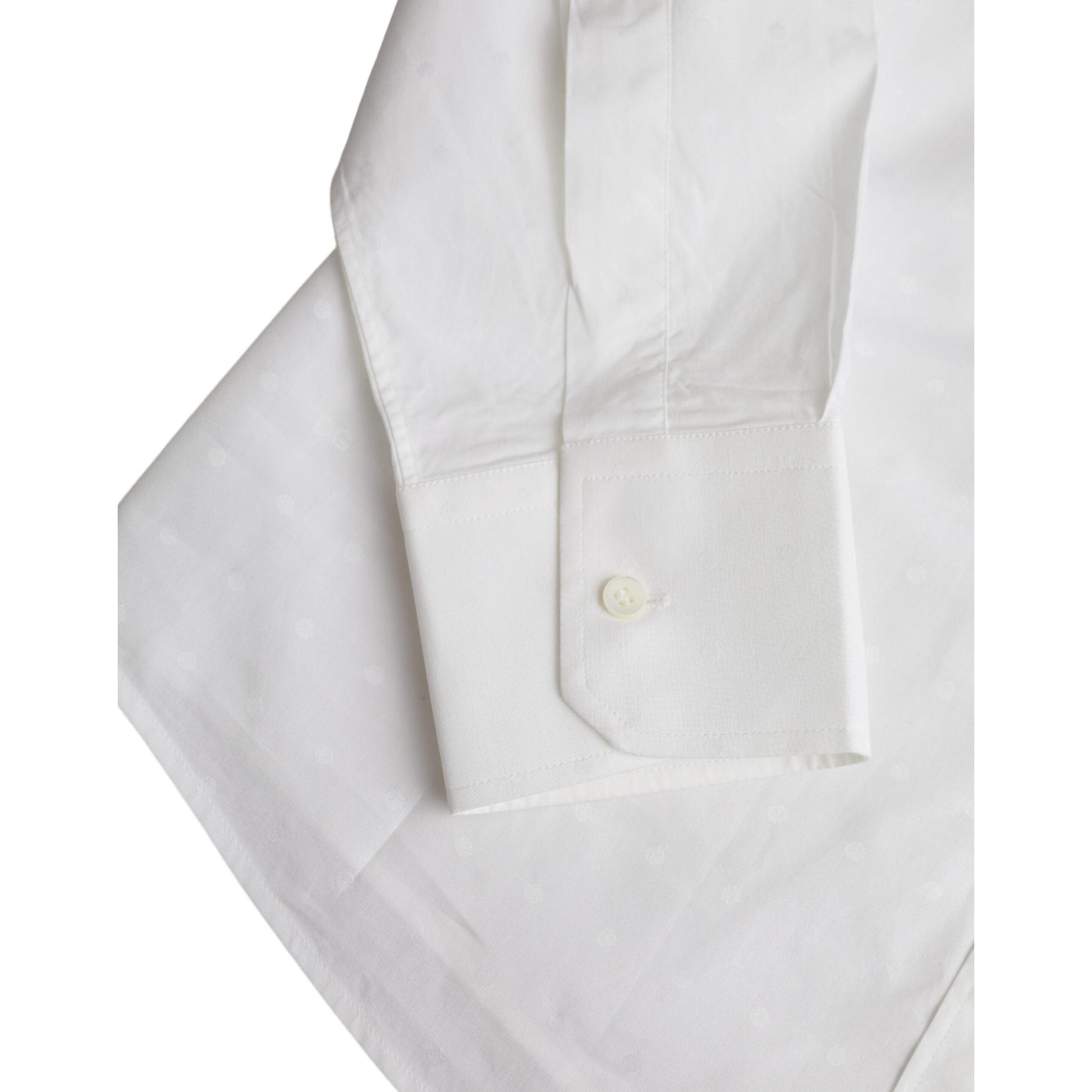 Omfavn elegance i sin reneste form med Dolce & Gabbana's White Logo Cotton Dress Shirt. Denne sublime skjorte bringer en sans for luksuriøst design ind i enhver herregarderobe. Lavet af 100% bomuld, tilbyder den uovertruffen komfort samtidig med, at den skaber et skarpt og sofistikeret look. Den rene hvide nuance tilfører et tidløst touch, mens det subtile logo på brystet understreger brandets berømte æstetik.