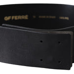 GF Ferre Black Genuine Leather Wide Logo Waist Belt