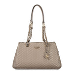 Elevate your ensemble with the Guess Jeans Anning Bag, a harmonious blend of style and practicality. Featuring dual chain shoulder handles that add a touch of glamour, this chic piece is as versatile as it is elegant. Stay organized on the go with two external pockets, dual compartments, a central pouch, and an additional internal pocket for your essentials. Adorned with contrasting details and the iconic Guess logo, this brown handbag offers a seamless zip and automatic closure system, complemented by protective feet to keep your accessory in pristine condition. Step out in confidence with this must-have from Guess Jeans.