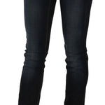 Opgrader din garderobe med et par bukser, der kombinerer modernitet med klassisk design. John Galliano Dark Blue Mid Waist Slim Fit Denim Casual Pants Jeans er det perfekte valg for den moderne kvinde, der værdsætter kvalitet og stil. Med sin mørkeblå farve og tidløse look, passer disse bukser perfekt til enhver lejlighed - fra afslappede dage med veninderne til mere formelle begivenheder.