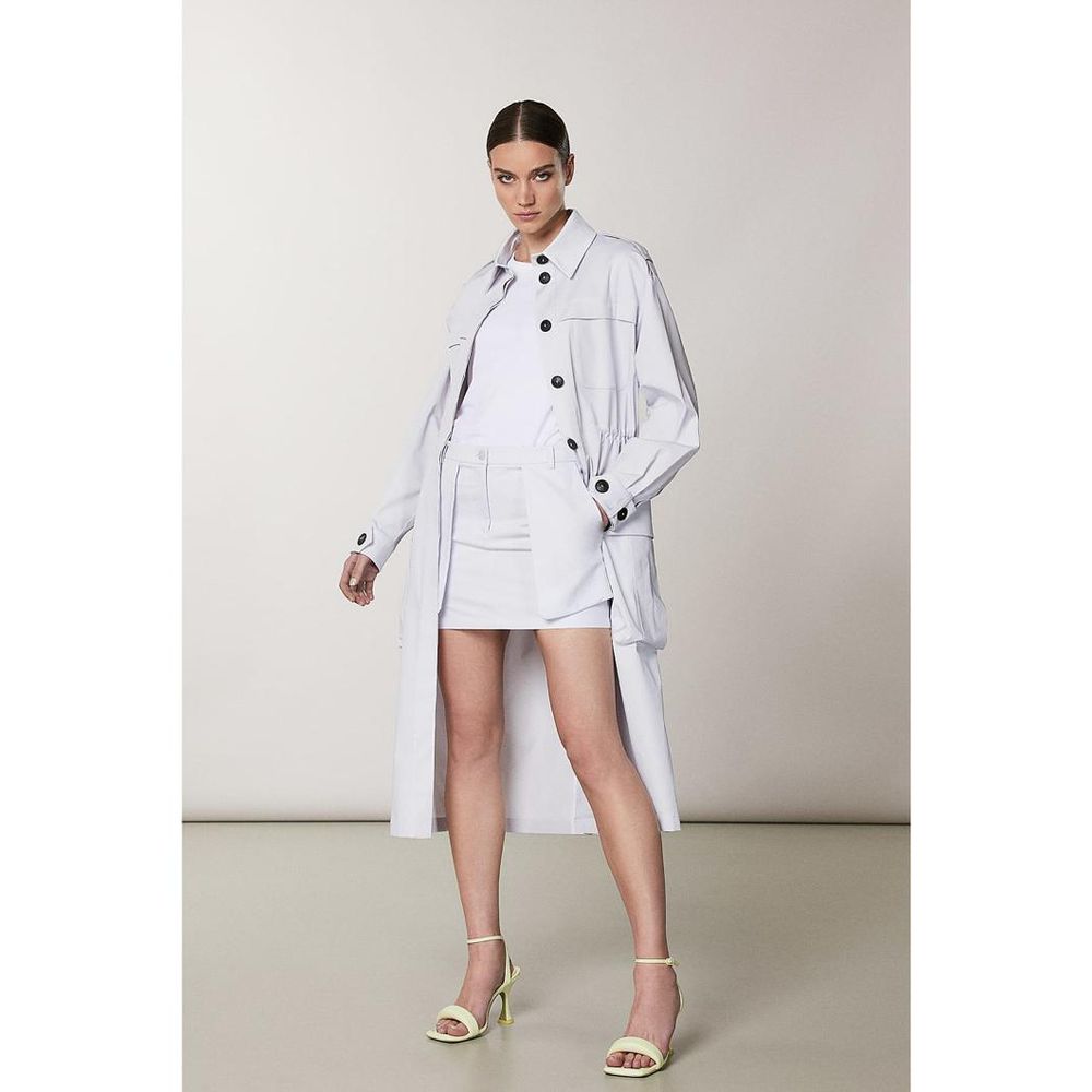 Giv din garderobe et blomstrende pust af farve med Patrizia Pepe's Lilla Cotton Mini Skirt. Dette sofistikerede, men alligevel alsidige stykke tøj er det perfekte valg til den stilsikre kvinde, der ønsker at adde et pop af farve til sin streg-