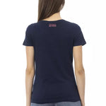 Trussardi Action Blue Cotton Women's T-Shirt er udformet til at tilbyde en blanding af ultimativ komfort og elegant enkelthed. Gør dit hverdagslook mere stilfuldt med denne skønne blå t-shirt fra Trussardi Action. Den friske blå nuance og det bløde, åndbare bomuld gør denne t-shirt til et ideelt valg, uanset om du skal på arbejde, studere, eller blot nyde en afslappet weekend. Med sit tidløse design og høje kvalitet vil denne t-shirt fra Trussardi Action snildt være et favoritstykke i din garderobe i mange sæsoner.