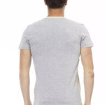 Kvalitetsmøde i den trendy grå nuance, ophøjer denne Trussardi Action V-hals t-shirt dine basis looks. Med det karakteristiske V-hals design og lækkert bløde materiale, er denne t-shirt designet til at give både komfort og stil i én og samme pasform. Brug den alene med et par jeans til uformelle lejligheder eller under en skjorte, til det mere formelle.