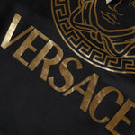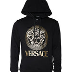 Opgrader din hverdagsgarderobe med en Tilfør et strejf af luksus til din garderobe med en Versace Black Medusa Print Cotton Hoodie. Denne sort-hættetrøje er udformet i ren bomuld for at sikre ultimativ komfort og åndbarhed, og så er den prydet af det ikoniske Versace-motiv - de guldforgyldte medusa-hoveder. Dette stilrene, men kraftfulde design er derfor for manden, der ønsker at udstråle elegance, men samtidig at bevare et maskulint præg. Med et slankt, alsidigt snit, som er repræsentativt for firmaets designtraditioner, tilfører denne hættetrøje en sofistikeret stemning til enhver outfit. Den er nem at matche med forskellige underdele, hvilket betyder, at den passer perfekt ind i enhver garderobe.
